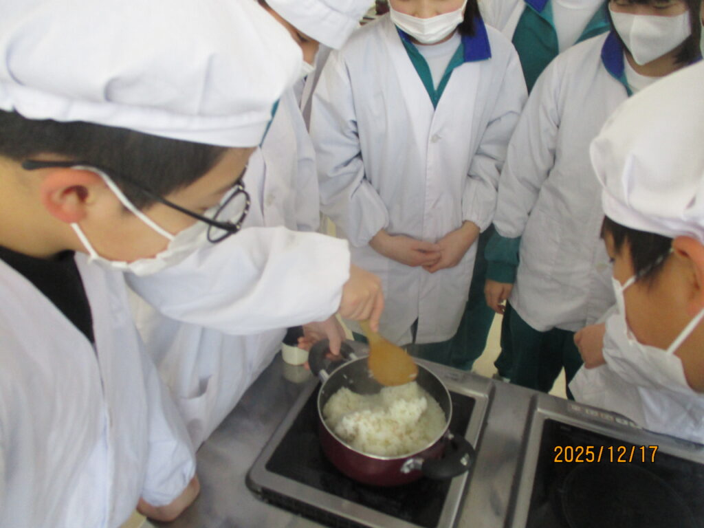 5年生は、家庭科の授業でお米を炊きました。お米の匂いや炊き上がるまでの過程を観察して、美味しいお米を炊くことができました。お米は、ファーム作道さんから頂いたものを使わせて頂きました。ありがとうございました。