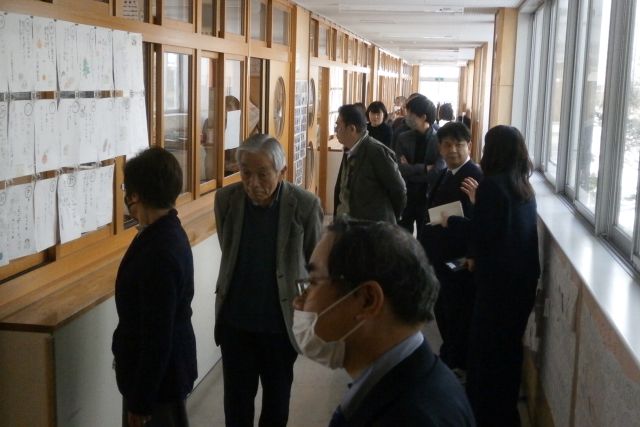 2年生は、「○○してる ぼく・わたし」と題して、絵版画に挑戦しました。顔や体のパーツを紙をちぎって作り、重ね合わせながら、自分を表現しました。愉快な表情や動きをした作品がたくさん飾られています。