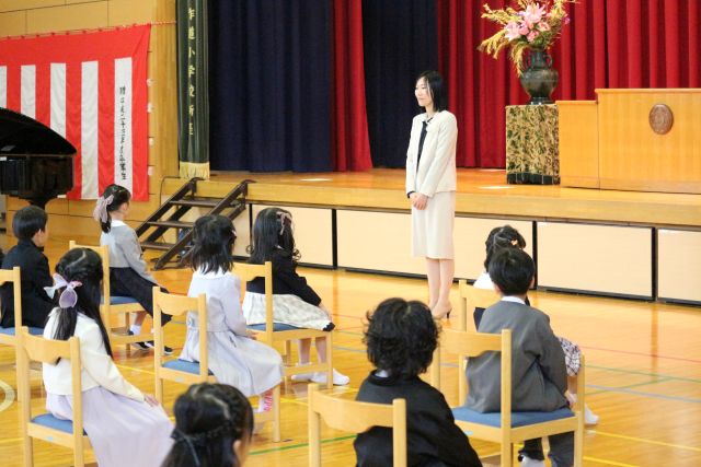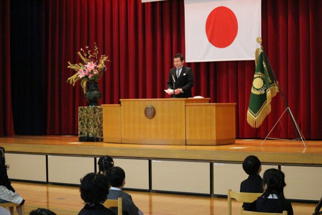 始業式では、「4(あ)わせ合い言葉をブラッシュアップしましょう」と校長先生がお話しされました。子供たちは、しっかりと体を向け、姿勢よく話を聞いていました。