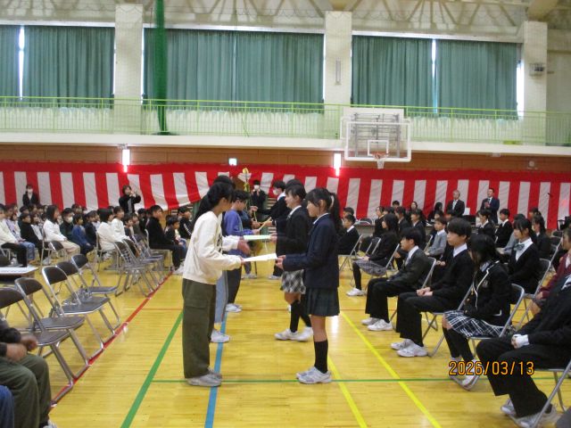 児童会の引継ぎ式が行われました。6年生から5年生にバトンタッチ。5年生は6年生から励ましの言葉をもらい、次年度、最高学年としての自覚をもちました。