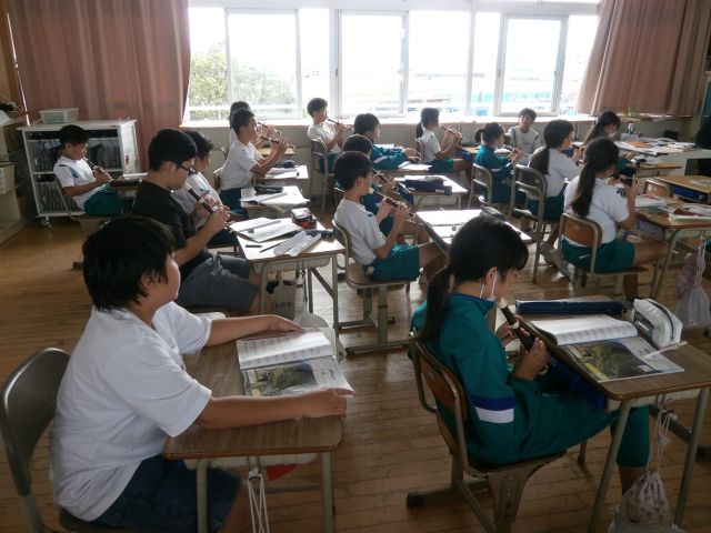 5年生 5年生の様子 Posted on 2025/09/222025/09/29 1組は、今週末の宿泊学習で行うキャンドルサービスの歌の練習をしていました。2組は、リコーダーの練習をしていました。#ソの音が出せずに苦労していました。