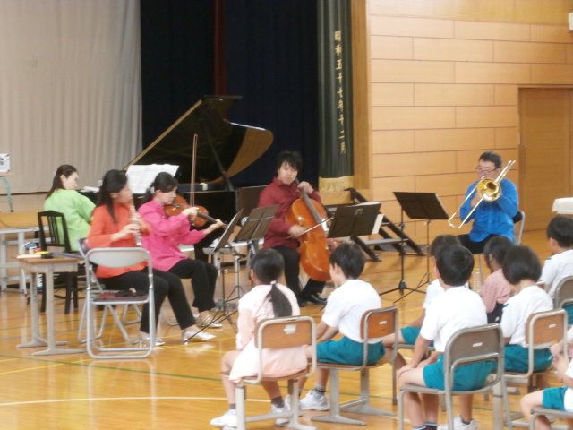 「楽器同士がお話をしているみたいだった」と立派に感想を伝える児童もいました。プロの演奏家の生の演奏を聴く機会はとても貴重で、子供たちの心を耕すよい機会となりました。「デリオケ」のみなさん、本当にありがとうございました。