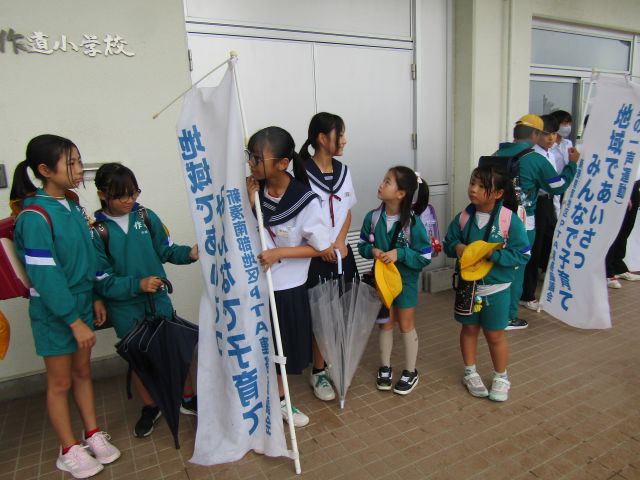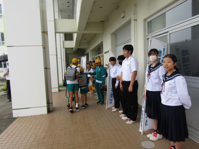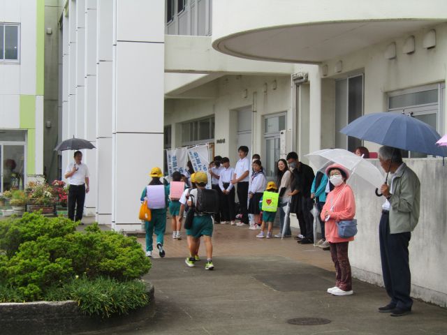 小雨が降る中、小中PTA合同挨拶運動が行われました。自分から進んで挨拶する児童、しっかり顔を見て挨拶する児童。PTAや中学生の前を恥ずかしそうに通り過ぎる児童、一言も発せず通り過ぎる児童。様々な姿がありました。堂々と胸を張って挨拶をする人に育ってほしいと願います。来てくれた卒業生、地域・保護者の皆様、ご協力ありがとうございました。