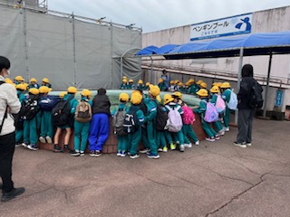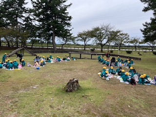 広場で昼食をとりました。体調不良を訴える児童もおらず、順調に見学しています。