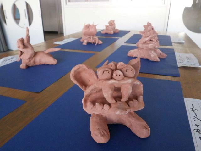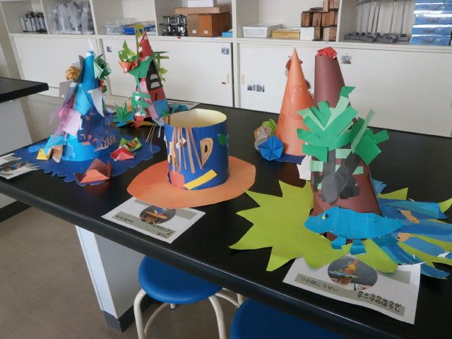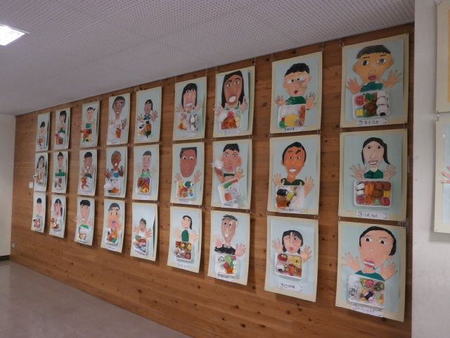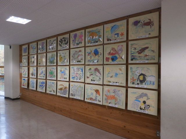 図工の時間に子供たちが作った立体物や絵が飾られています。それぞれ個性あふれる作品が展示されています。14日(金)まで展示してあります。