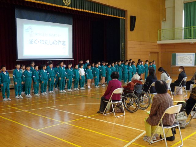 19日(水)。今日は、いつもお世話になっている地域の方や学校教育ボランティアさんをお招きして、「感謝の集い」を行いました。日頃、伝え切れていない「ありがとう」の気持ちを合唱や発表を通して伝えることができました。これからも道の子を温かく見守ってください。よろしくお願いします。