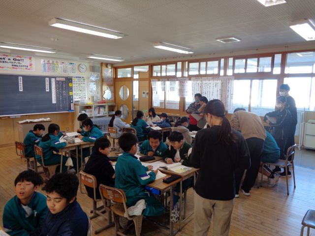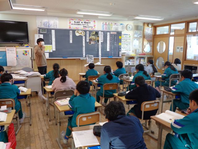 5年2組で国語科の研究授業を行いました。今日は、昨日の村田教諭に続き、同じ初任である藤田教諭が提案授業を行いました。主人公の心の変化を捉えるために、根拠となる文章を見つけようと子供たちは頑張っていました。