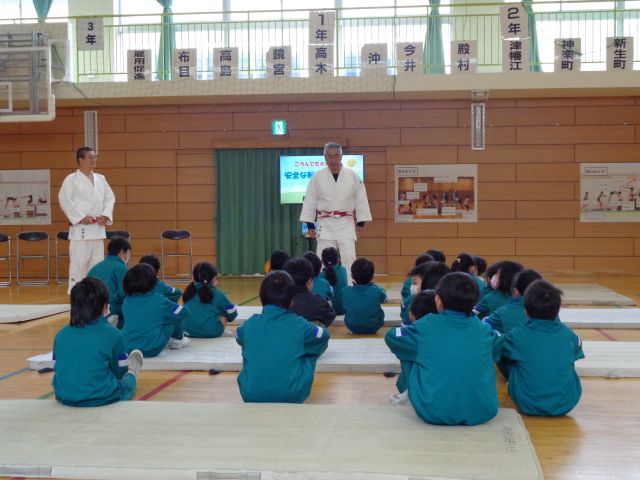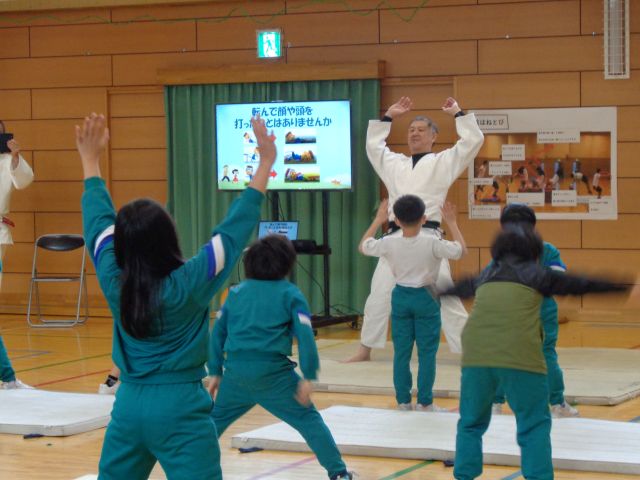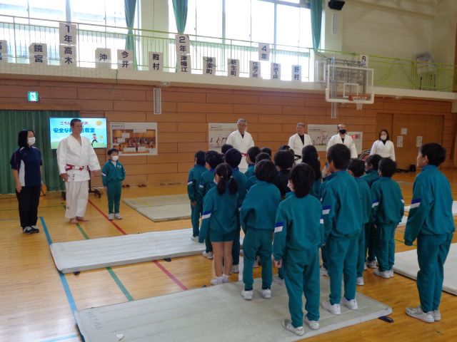 今日は、射水市柔道連盟の方を講師としてお招きし、「こどもの安全な転び方教室」を実施しました。近年、子供の転倒事故による頭部等への傷害が増加傾向にある中、転んでも怪我をしない身のこなしを習得し、予防につなげることを目的としました。子供たちは講師の先生方から、しっかり指導を受け、楽しく活動していました。