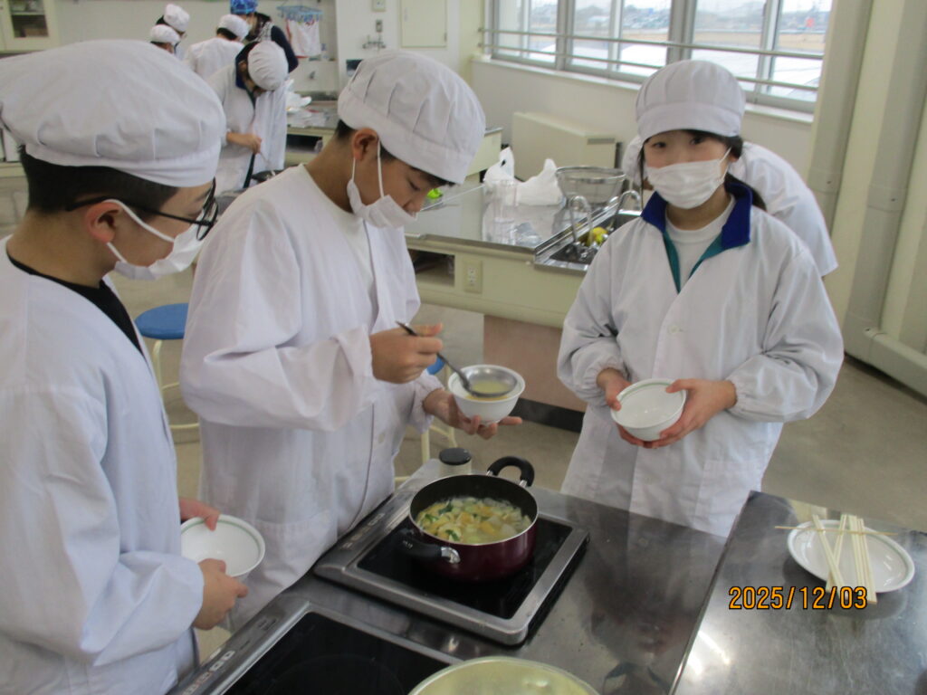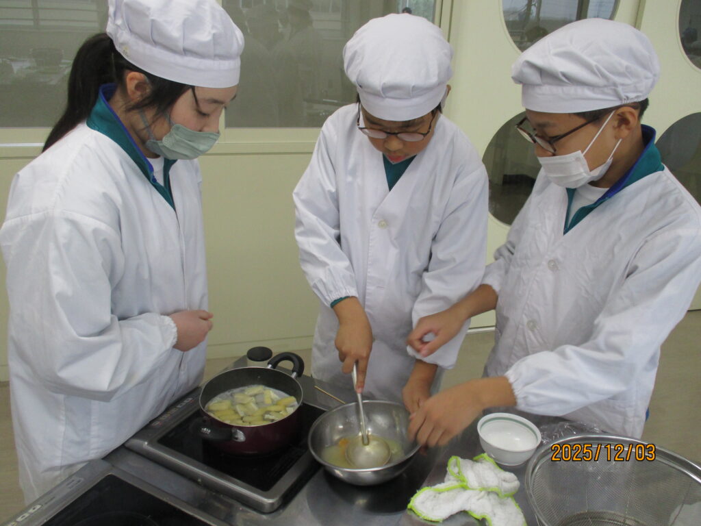5年生 5年生 家庭科 みそ汁を作りました Posted on 2025/12/05 5年生は、家庭科の調理実習でみそ汁を作りました。 自分たちで、煮干しから出汁をとり、材料を切って作ったみそ汁はとても美味しかったです。 出汁がないみそ汁と飲み比べることで、出汁の美味しさを感じることができました。