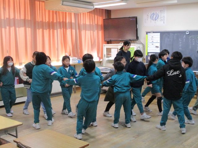 学校だより 3年生 お楽しみ会 Posted on 2025/12/19 2学期も子供たちはよく頑張りました。今日は、自分たちで企画したお楽しみ会を開き、友だちと楽しみました。これは先生も一緒に「花いちもんめ」をしているところです。