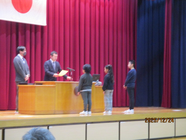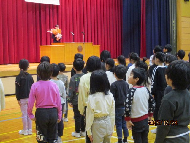 学校だより 2学期が終わりました Posted on 2025/12/26 今日は、2学期の終業式でした。受賞集会と離任式もありました。1,3,5年生の代表の児童が今学期がんばったことを発表してくれました。4月から一緒に勉強してきた村田茉奈美先生が今日でお別れになりました。本当にありがとうございました。