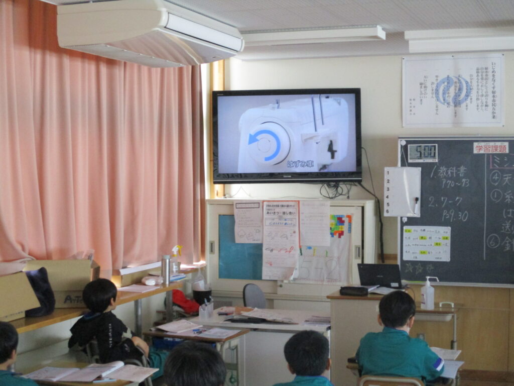 5年生は、3学期の家庭科の授業でミシンを使います。ミシンを安全に正しく扱うために名前や使い方を覚えています。ノートを整理したり、動画を見たりしながら学習を進めています。
