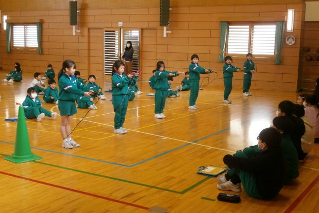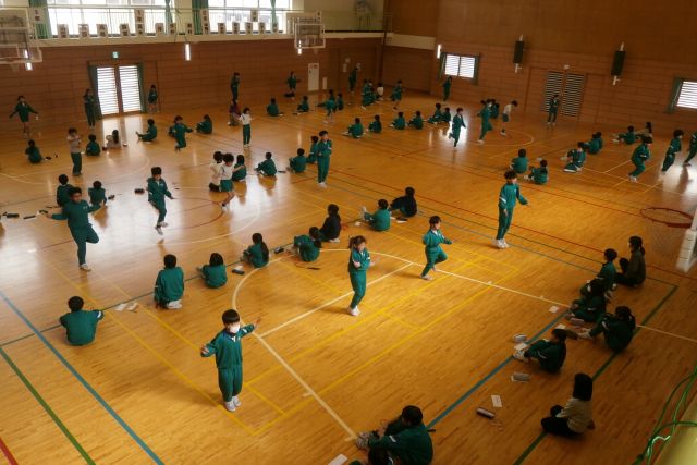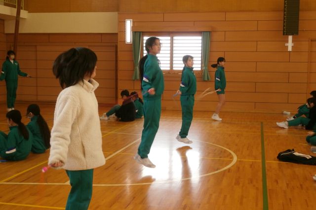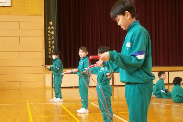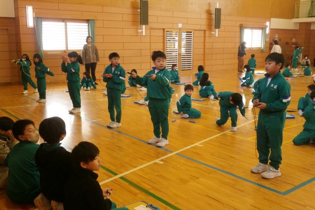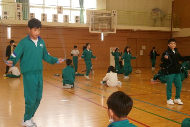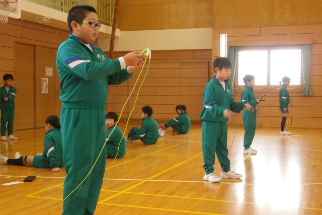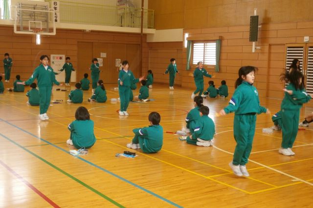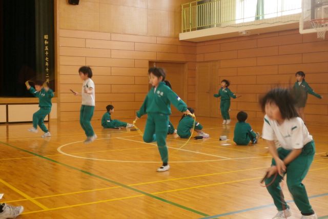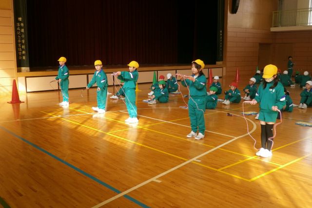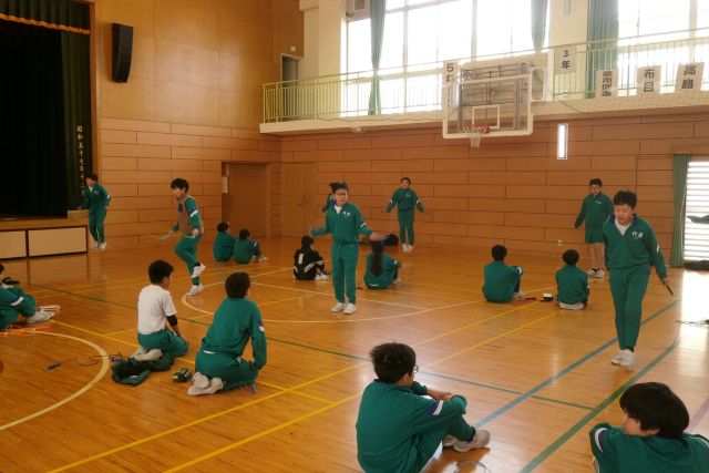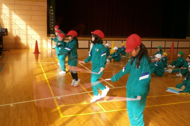 低学年・中学年とは違い、体育館中に”ビュン、ビュン”と激しいなわとびの音が響き渡りました。三重跳びやスーパーサイドクロスに挑戦する児童もいました。なわとび大会の結果は25日に校内放送で行われます。