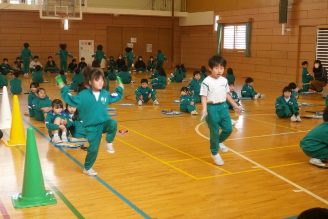 去年よりもたくさん跳ぼうとみんな一生懸命頑張りました。姿勢を正して、静かに話を聞き、仲間の頑張りを応援しました。