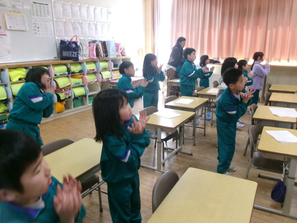 学校だより 1年生 手話 Posted on 2026/02/20 音楽では、いろいろな曲に合わせて、手話をしながら歌詞を表現しています。子供たちは、手本となる手の形や動きをよく見ながら、一つ一つ丁寧にまねをしていました。