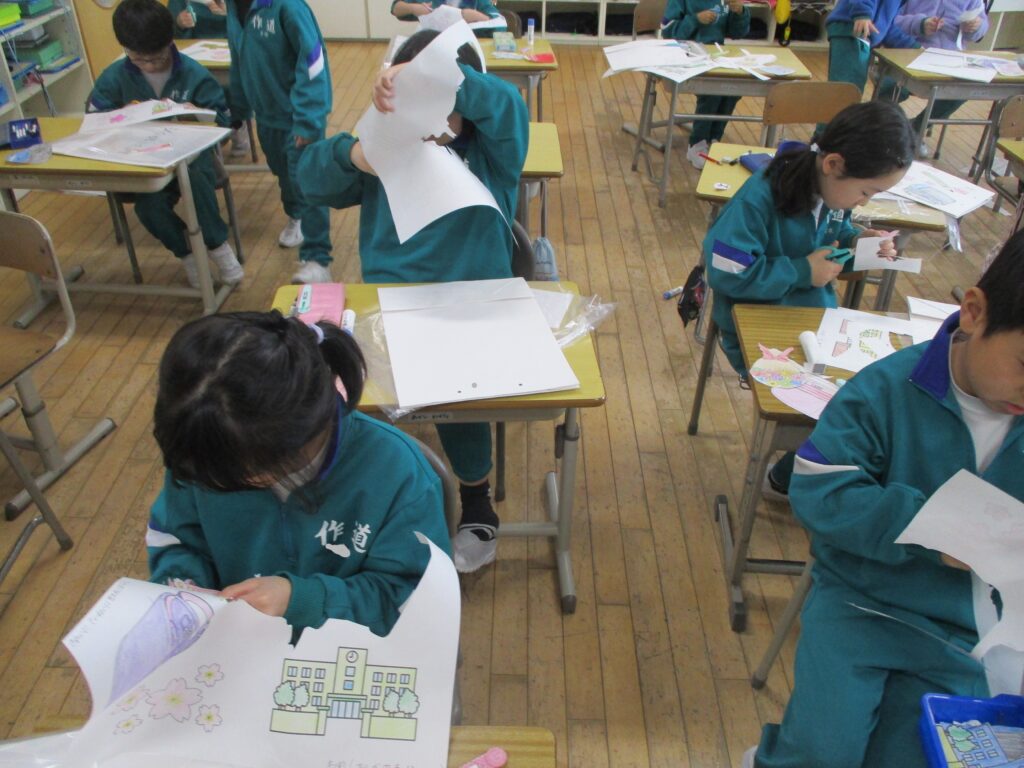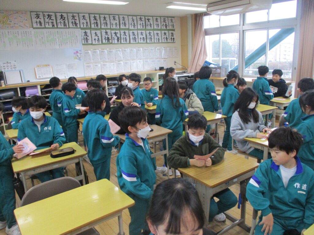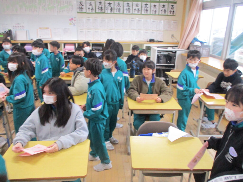2年生は卒業おめでとう集会に向けて、色紙を入れる袋作りや招待状の色塗りを行いました。そして、今日は招待状を渡しに行きました。今までの感謝の気持ちを伝えられるように丁寧に、心を込めて作っている様子が見られました。集会当日も「ありがとう」の気持ちを伝えられるといいですね!