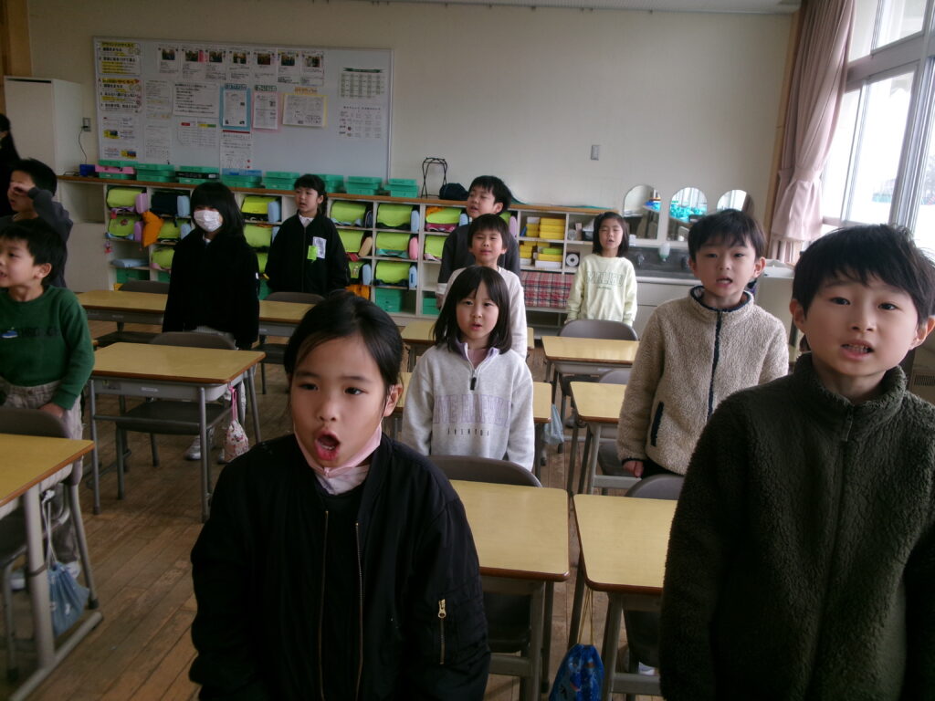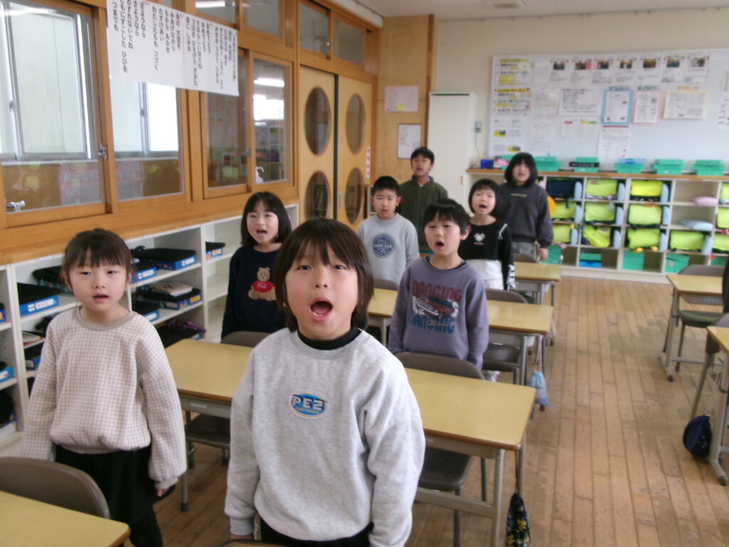 卒業式に向けて、歌の練習も頑張っています。きれいな声が出るように、背すじを伸ばして良い姿勢で立つことや、口の奥を広く開けて歌うことを意識しています。みんなで心を一つにして、卒業生に感謝の気持ちが伝わるような歌を届けたいと思いながら、一生懸命練習しています。