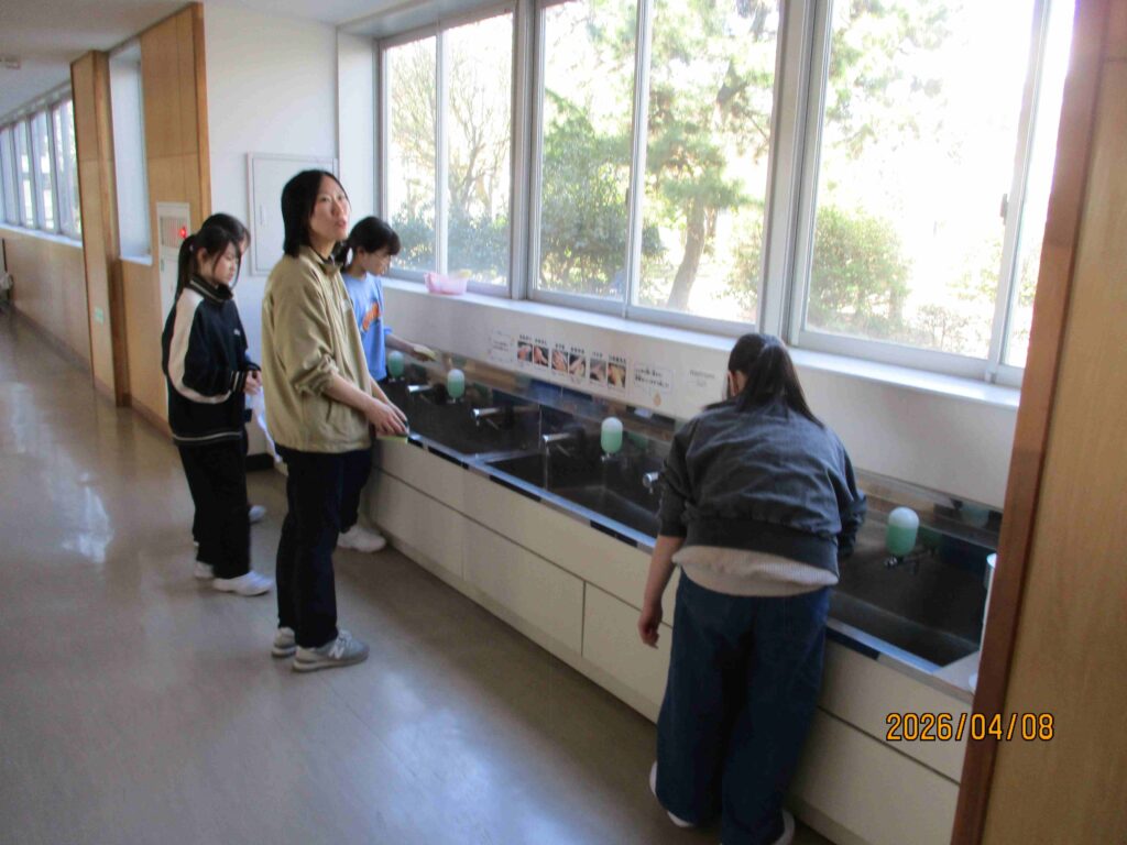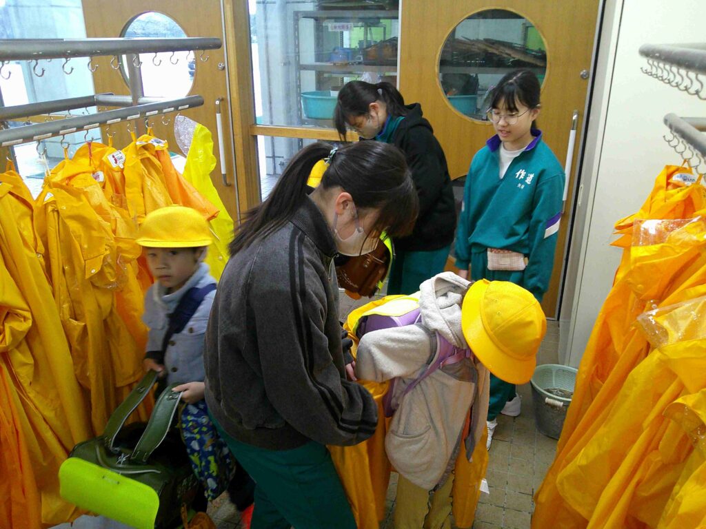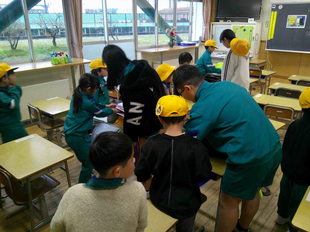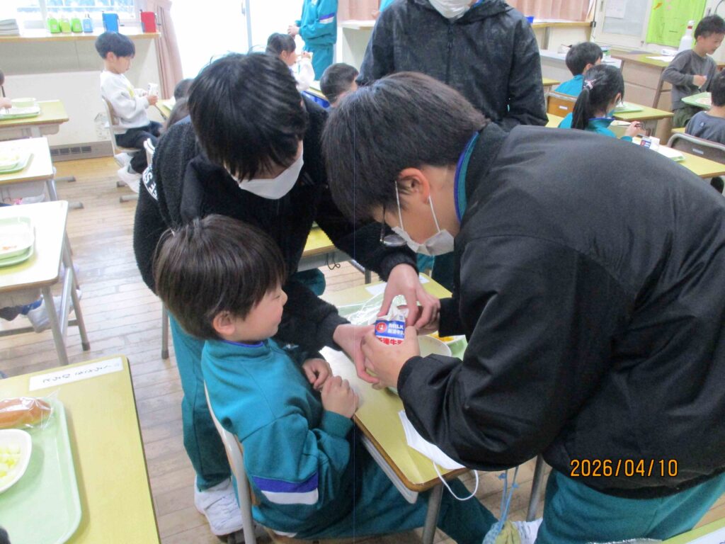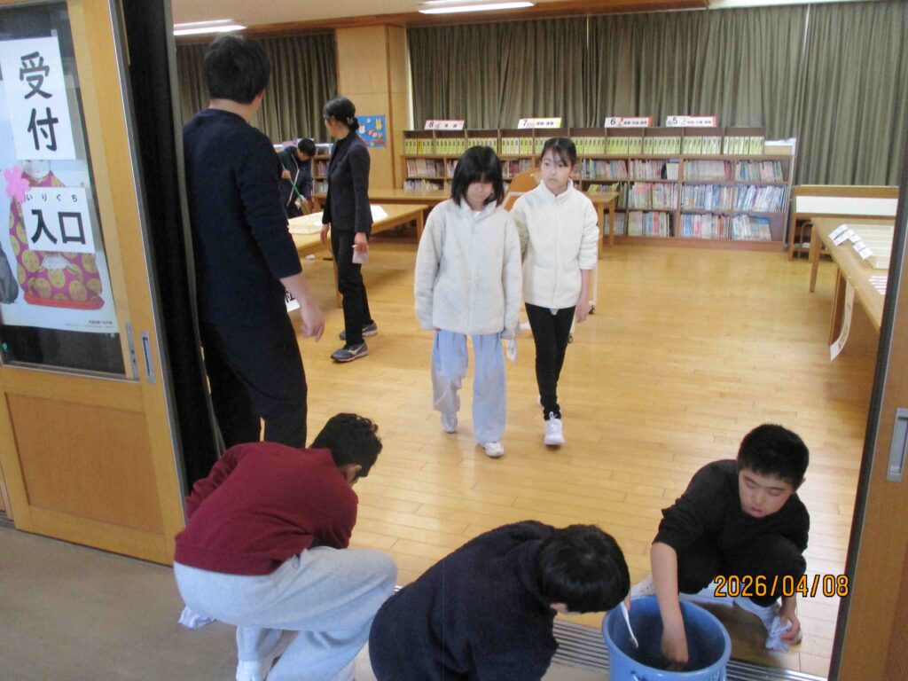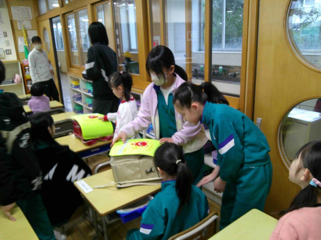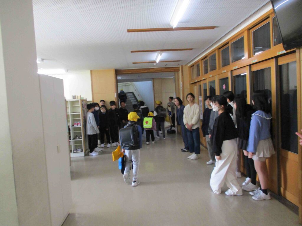 1年生のお手伝いも始まりました。「私も!僕も!」とたくさんの6年生が駆けつけてくれて、目線を合わせて優しく活動する姿が素敵です。あいさつの輪を広げようと、玄関先であいさつもがんばっています。