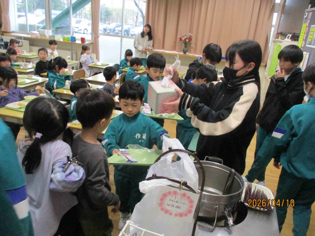 最高学年に進級して3日が経ちました。学校のリーダーとして一生懸命にがんばる姿がとしても素敵な6年生です。入学式の準備や片付けをテキパキと行い、1年生への学校紹介も優しい笑顔ではっきりとした口調で発表していました。