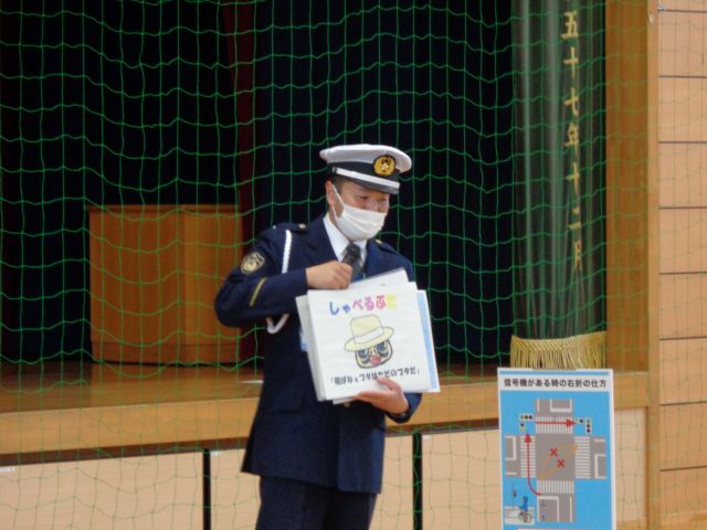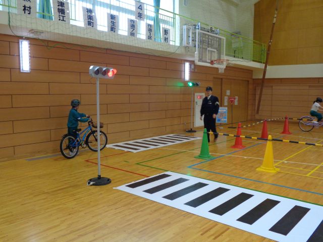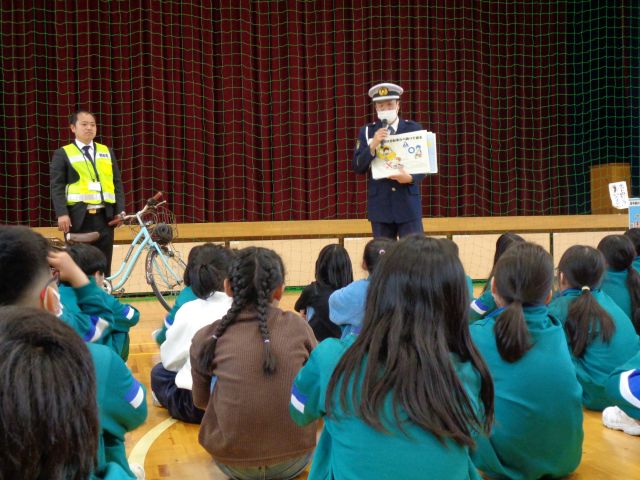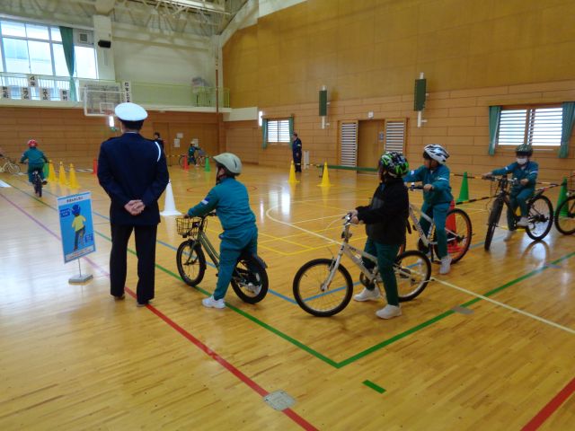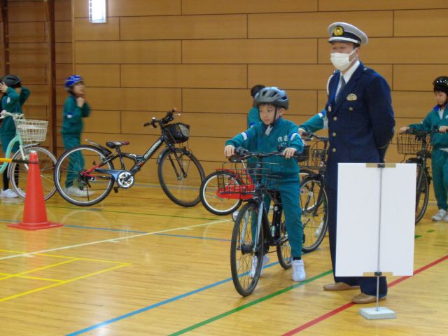 4年生は自転車安全教室を行いました。射水警察署員、市役所生活安全課の方、交通安全協会、交通指導員等、たくさんの方にお世話になり、ご指導いただきました。ルールやマナーについて教えていただいた後、実技演習を行いました。今日教えていただいたことを思い出し、安全に気をつけて、自分の地区で自転車を利用しましょう。保護者の皆様には、自転車の運搬にご協力いただき、ありがとうございました。先生方の手で前日にグラウンドに運転コースを作ったのに、、生憎の雨になってしまいました。