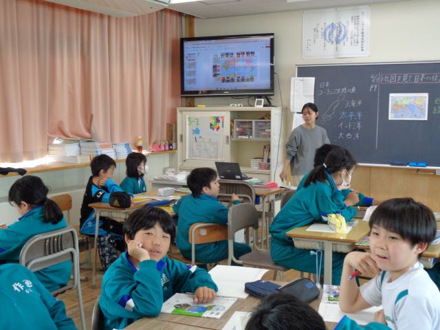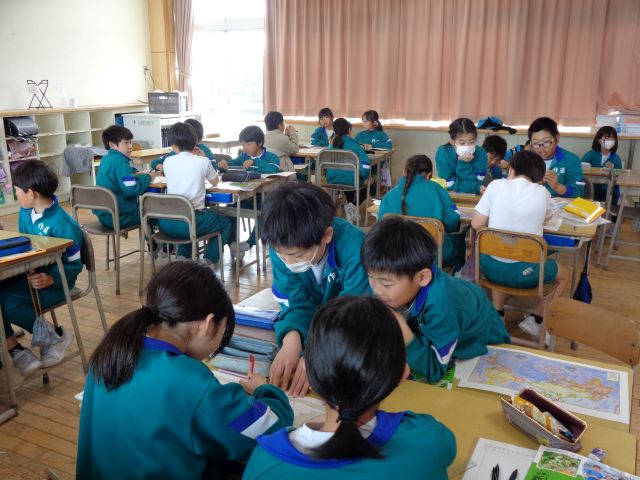 5年生は、地図の学習をしています。緯度や経度、南半球や北半球。地図の見方が対話を通して分かるようになりました。
