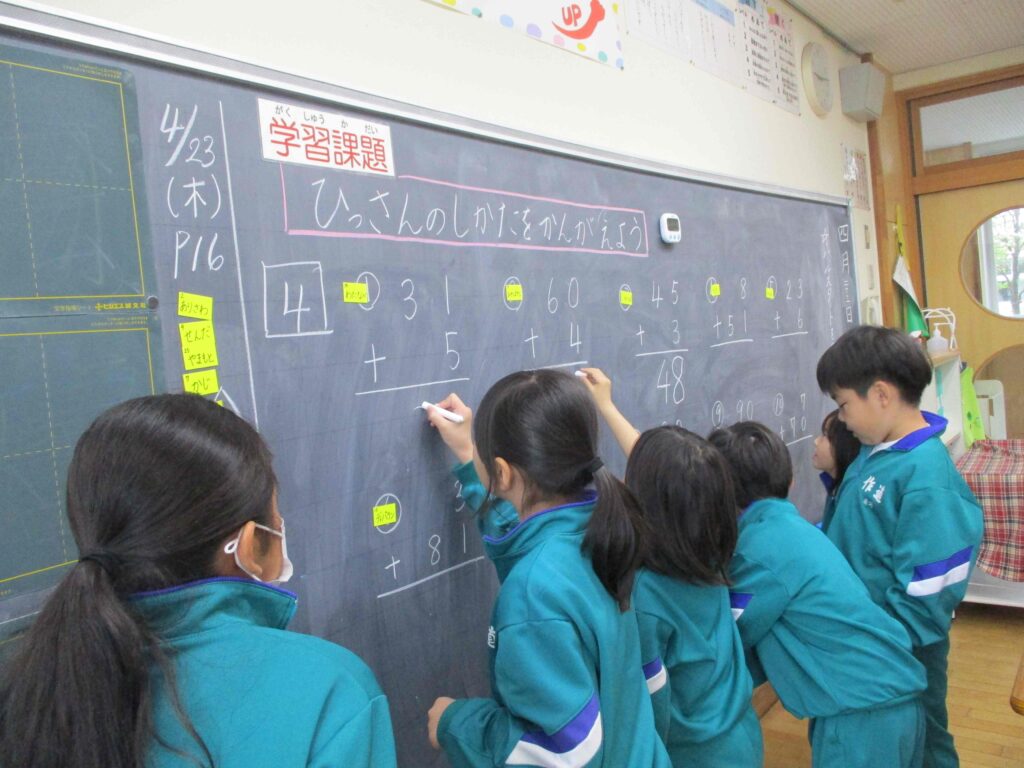 R8(2年) 2年生 学習の様子 Posted on 2026/04/28 算数では、足し算の筆算をしています。ブロックを使い、くり上がりの足し算の方法をたしかめました。みんなとても意欲的に取り組んでいます。 国語では「ふきのとう」の音読発表会をしました。宿題でたくさん音読練習をしたり、発表会にむけてふりつけを考えたりしました。