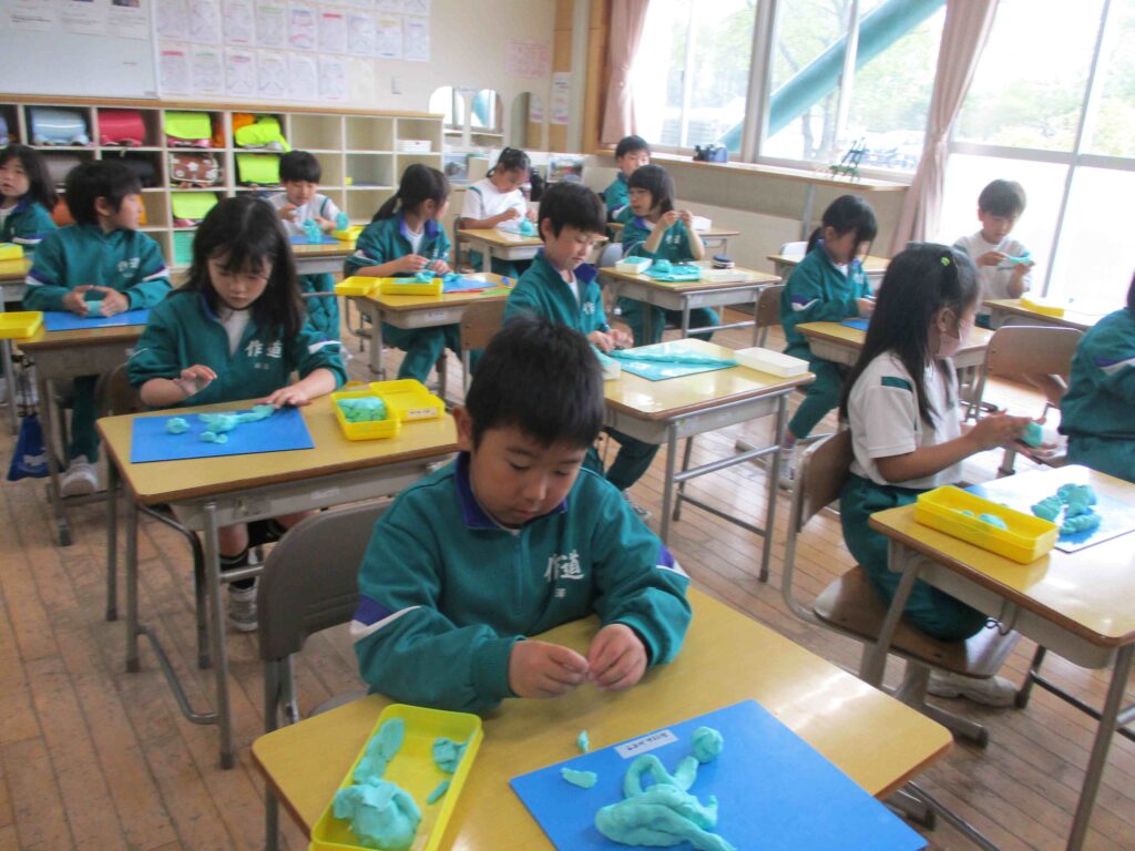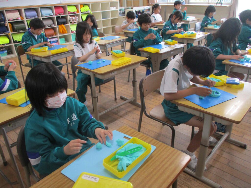 R8(2年) 2年生 図工の様子 Posted on 2026/04/28 図工では、ペットボトルに色をつけて、きれいな影を作ったり、粘土でいろいろな形を作ったりして楽しく活動に取り組みました。図工が大好きな2年生です。