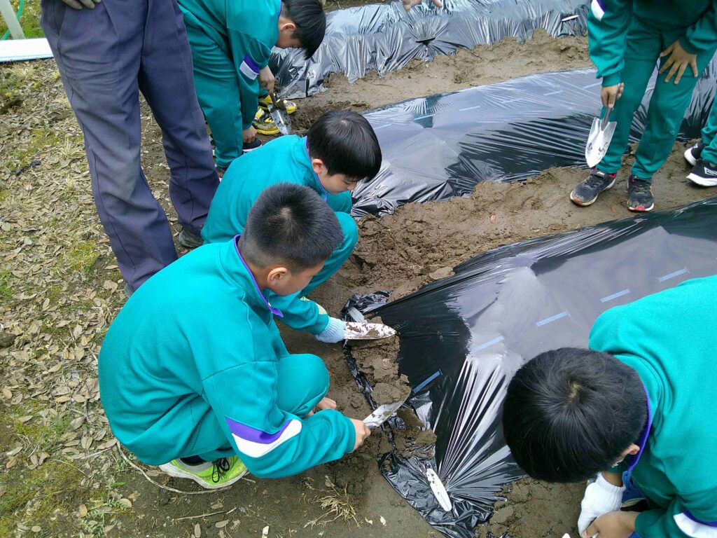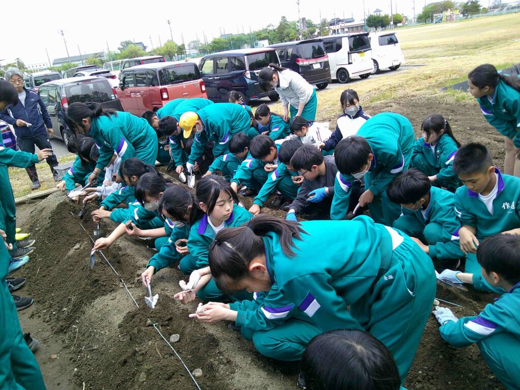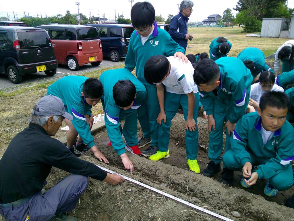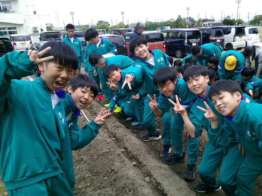 今日は、理科の学習で使用するじゃがいもを植えました。地域の方にお越しいただき、上手に育てるためのポイントを教わりながら作業しました。美味しいじゃがいもがたくさん育つように、みんなで大切に育てていきましょう。