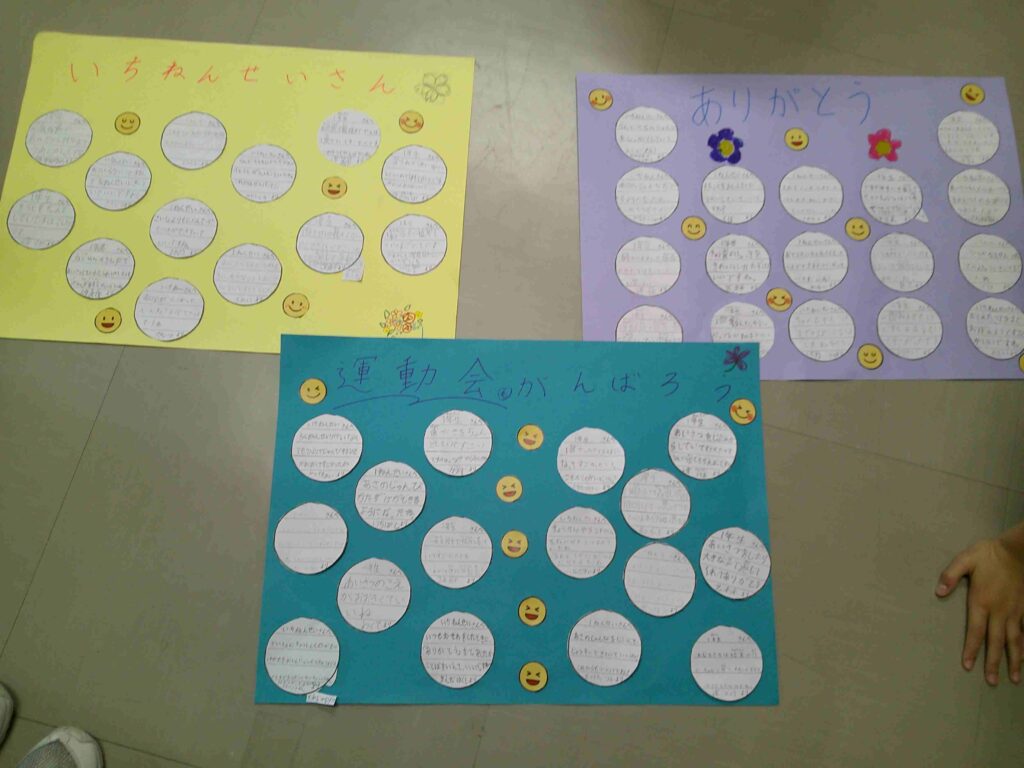 6年生は、入学式から約2週間、1年生が朝の支度や給食の片付けなどを自分たちでできるようにお手伝いをさせてもらいました。「ありがとう」の感謝の気持ちと「これからもがんばろうね」の応援の気持ちを込めて、あったかカードを書きました。これからも一緒に楽しい学校生活にしていこうね!