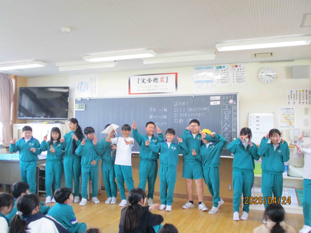 5月8日の運動会結団式に向けて、6年生では色団の目当てを決めたり、応援コールを創ったりしています。なかなかアイデアが出なかったり、話し合いが上手く進まなかったりして大変なこともありますが、学校のリーダーとしてがんばろうと奮闘しています。ゴールデンウィークが明けたら、いよいよ全校での練習が始まります。道の子のみんなをリードして素敵な運動会にしていけるといいですね。