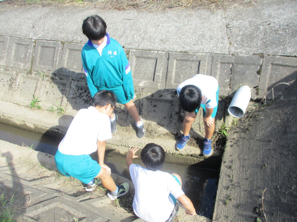10月2日に水辺の生き物調査を行いました。子供たちは作道地区に住む生き物に興味深々な様子でした。そして、この生き物たちが住み続けることができる環境を守ることができるようにがんばりたいという意欲を高めていました。