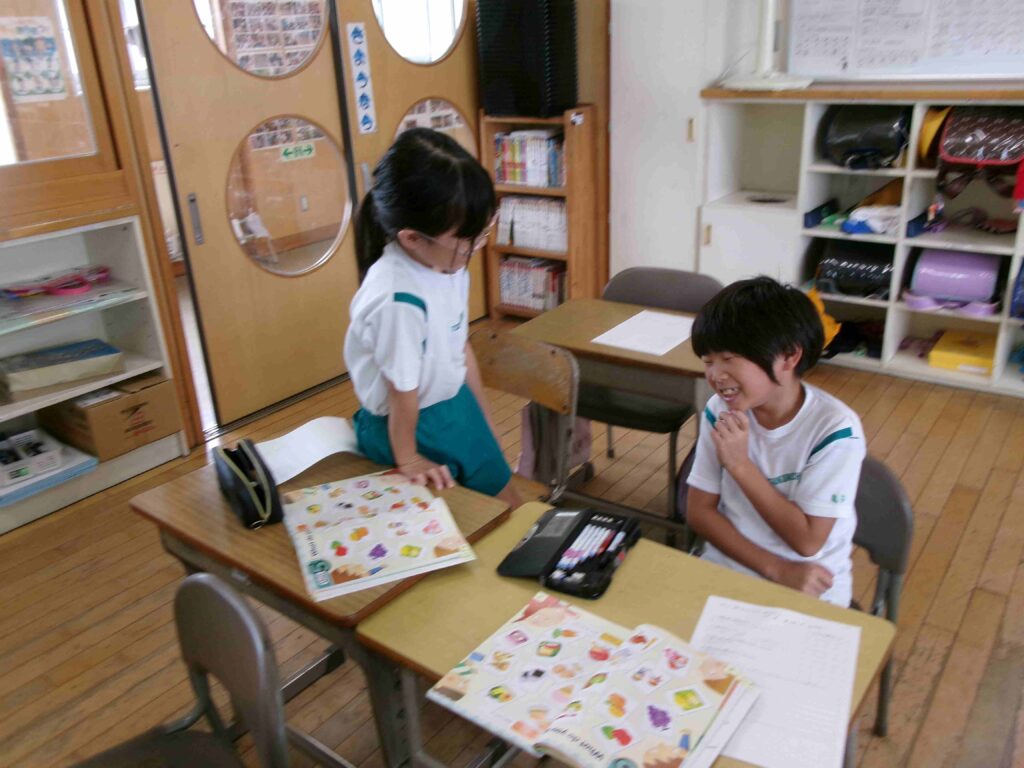 外国語では、いろいろなスポーツやフルーツ、食べ物などの言い方を練習した上で、好きかどうか?何が好きか?を英語で質問したり、正しく答えたりする学習をしています。友達とペアになって何度も繰り返し練習をして、かなり上達してきました!