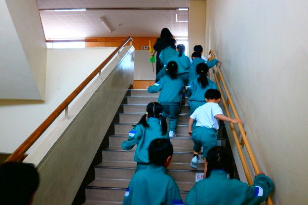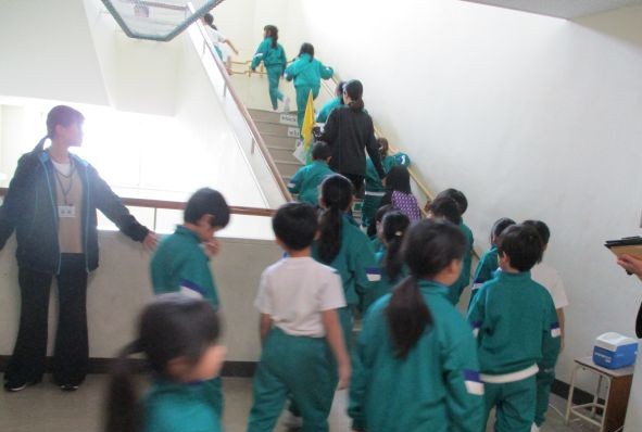 今日は、地震とそれに伴い発生した津波に対する避難訓練を行いました。全員3階に避難するためにかかった時間は4分41秒でした。作道小学校も海岸から直線距離で1.5kmのところにあります。地震が発生してから、数十分で町が飲み込まれることを考えるととても恐ろしいことです。教室では、事後指導も行われました。