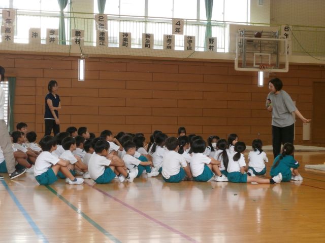 1年生は、講師の方をお招きして、鍵盤ハーモニカ教室を行いました。ホースの持ち方や吹くときの姿勢など、丁寧に教えていただきました。歌に合わせて、バスのクラクションの音を表現するなど楽しく活動していました。